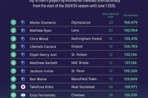 伟德体育官网-球员国际旅行里程:澳大利亚+新西兰球员前8,久保建英、恩佐上榜